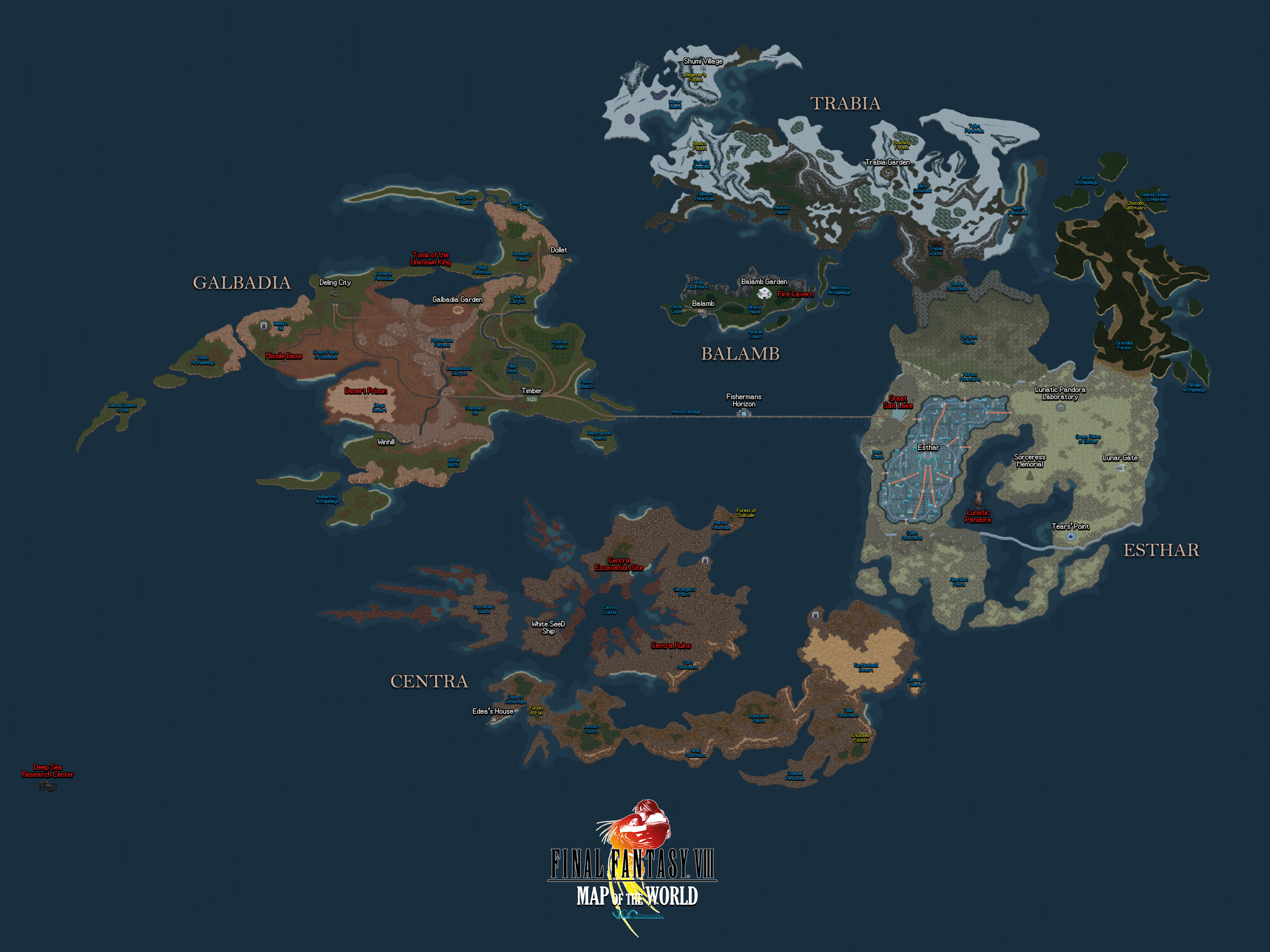 | Lunar 2: Eternal Blue Complete Maps | © 1994-2000 Game Arts / Toshiyuki Kunooka / Kadokawa / ESP / Vanguard / Working Designs | World (In-Game Map) | World | 2587 x 2122 | 4.18 MB | PNG | ripped | VGCartography |