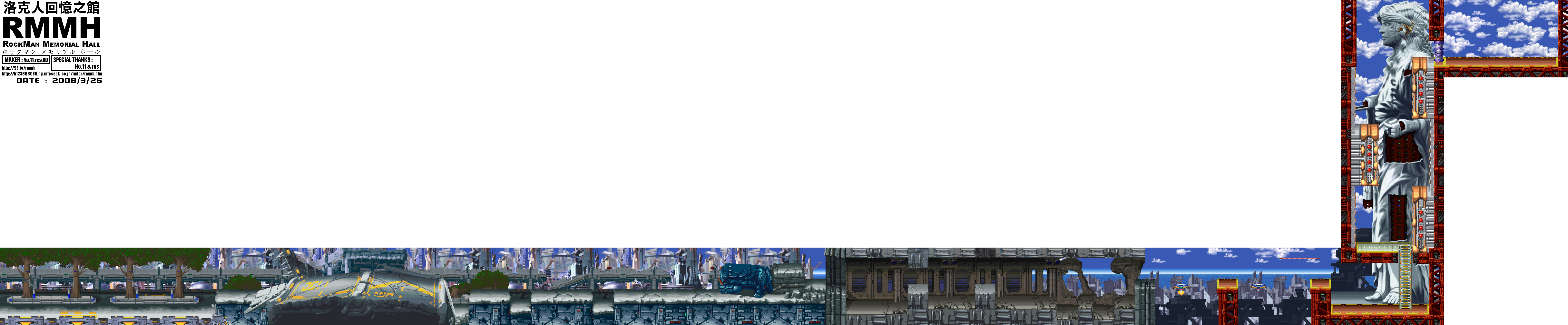 | Mega Man X 6 Maps | © 2001, 2003 Capcom, Co., Ltd. | Intro Stage | Intro Stage | 6464 x 960 | 681 kB | PNG | ripped | X GOD, No. 11, TK31 & parrot14green for the RockMan Memorial Hall - Extra Hall | Blaze Heatnix | Blaze Heatnix | 4464 x 2832 | 1.36 MB | PNG | ripped | X GOD & No. 11 for the RockMan Memorial Hall - Extra Hall | Blaze Heatnix | Sub Stage | 976 x 1856 | 410 kB | PNG | ripped | X GOD & No. 11 for the RockMan Memorial Hall - Extra Hall | Blizzard Wolfang | Blizzard Wolfang | 6704 x 1472 | 1.58 MB | PNG | ripped | X GOD & No. 11 for the RockMan Memorial Hall - Extra Hall | Blizzard Wolfang | Sub Stage | 3184 x 1184 | 603 kB | PNG | ripped | X GOD & No. 11 for the RockMan Memorial Hall - Extra Hall | Commander Yammark | Commander Yammark | 2896 x 240 | 1.44 MB | PNG | ripped | X GOD, No. 11, TK31 & parrot14green for the RockMan Memorial Hall - Extra Hall | Commander Yammark | Sub Stage | 5456 x 1936 | 219 kB | PNG | ripped | X GOD, No. 11, TK31 & parrot14green for the RockMan Memorial Hall - Extra Hall | Ground Scaravich | Ground Scaravich | 3840 x 4160 | 1.03 MB | PNG | ripped | X GOD & No. 11 for the RockMan Memorial Hall - Extra Hall | Ground Scaravich | Sub Stage | 1264 x 736 | 147 kB | PNG | ripped | X GOD for the RockMan Memorial Hall - Extra Hall | Infinity Mijinion | Infinity Mijinion | 6144 x 1152 | 321 kB | PNG | ripped | X GOD for the RockMan Memorial Hall - Extra Hall | Infinity Mijinion | Sub Stage | 2288 x 496 | 62.4 MB | PNG | ripped | X GOD for the RockMan Memorial Hall - Extra Hall | Rainy Turtloid | Rainy Turtloid | 9360 x 928 | 772 kB | PNG | ripped | X GOD, No. 11 & TK31 for the RockMan Memorial Hall - Extra Hall | Rainy Turtloid | Sub Stage | 1616 x 928 | 177 kB | PNG | ripped | X GOD for the RockMan Memorial Hall - Extra Hall | Shield Sheldon | Shield Sheldon | 5472 x 752 | 298 kB | PNG | ripped | X GOD for the RockMan Memorial Hall - Extra Hall | Shield Sheldon | Sub Stage | 3248 x 240 | 210 kB | PNG | ripped | X GOD for the RockMan Memorial Hall - Extra Hall | Secret Lab | Stage 1 | 8416 x 1424 | 1.10 MB | PNG | ripped | X GOD for the RockMan Memorial Hall - Extra Hall | Secret Lab | Stage 2 | 6400 x 3520 | 1.28 MB | PNG | ripped | X GOD for the RockMan Memorial Hall - Extra Hall | ?????? | ?????? | 3856 x 1984 | 870 kB | PNG | ripped | X GOD for the RockMan Memorial Hall - Extra Hall |