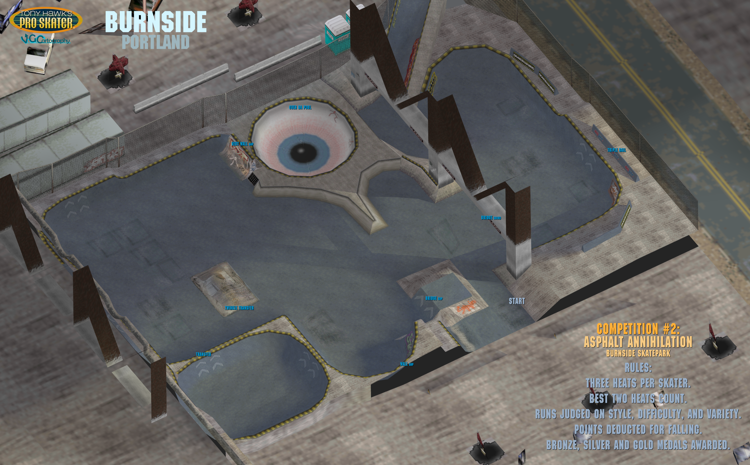 | Tony Hawk's Pro Skater 2 Maps | © 1999, 2000 Activision, Inc. / Neversoft Entertainment | GBA Vs. PS1 Comparison | GBA Vs. PS1 Comparison | 2194 x 3324 | 4.09 MB | PNG | ripped | VGCartography | The Hangar - Mullet Falls, MT | The Hangar - Mullet Falls, MT | 3041 x 1423 | 3.96 MB | PNG | ripped | VGCartography | School II - Southern Cali | School II - Southern Cali | 2574 x 1604 | 3.83 MB | PNG | ripped | VGCartography | Marseille, France | Marseille, France | 2990 x 2675 | 6.94 MB | PNG | ripped | VGCartography | NY City, New York | NY City, New York | 2303 x 1917 | 3.13 MB | PNG | ripped | VGCartography | Venice Beach, California | Venice Beach, California | 2744 x 1509 | 5.25 MB | PNG | ripped | VGCartography | Skatestreet - Ventura | Skatestreet - Ventura | 2171 x 1587 | 3.15 MB | PNG | ripped | VGCartography | Philadelphia, Pennsylvania | Philadelphia, Pennsylvania | 3215 x 1931 | 5.30 MB | PNG | ripped | VGCartography | The Bullring - Mexico | The Bullring - Mexico | 2216 x 1675 | 2.92 MB | PNG | ripped | VGCartography | Skate Heaven | Skate Heaven | 2830 x 1346 | 3.79 MB | PNG | ripped | VGCartography | Chopper Drop - Hawaii | Chopper Drop - Hawaii | 1018 x 1150 | 265 kB | PNG | ripped | VGCartography |