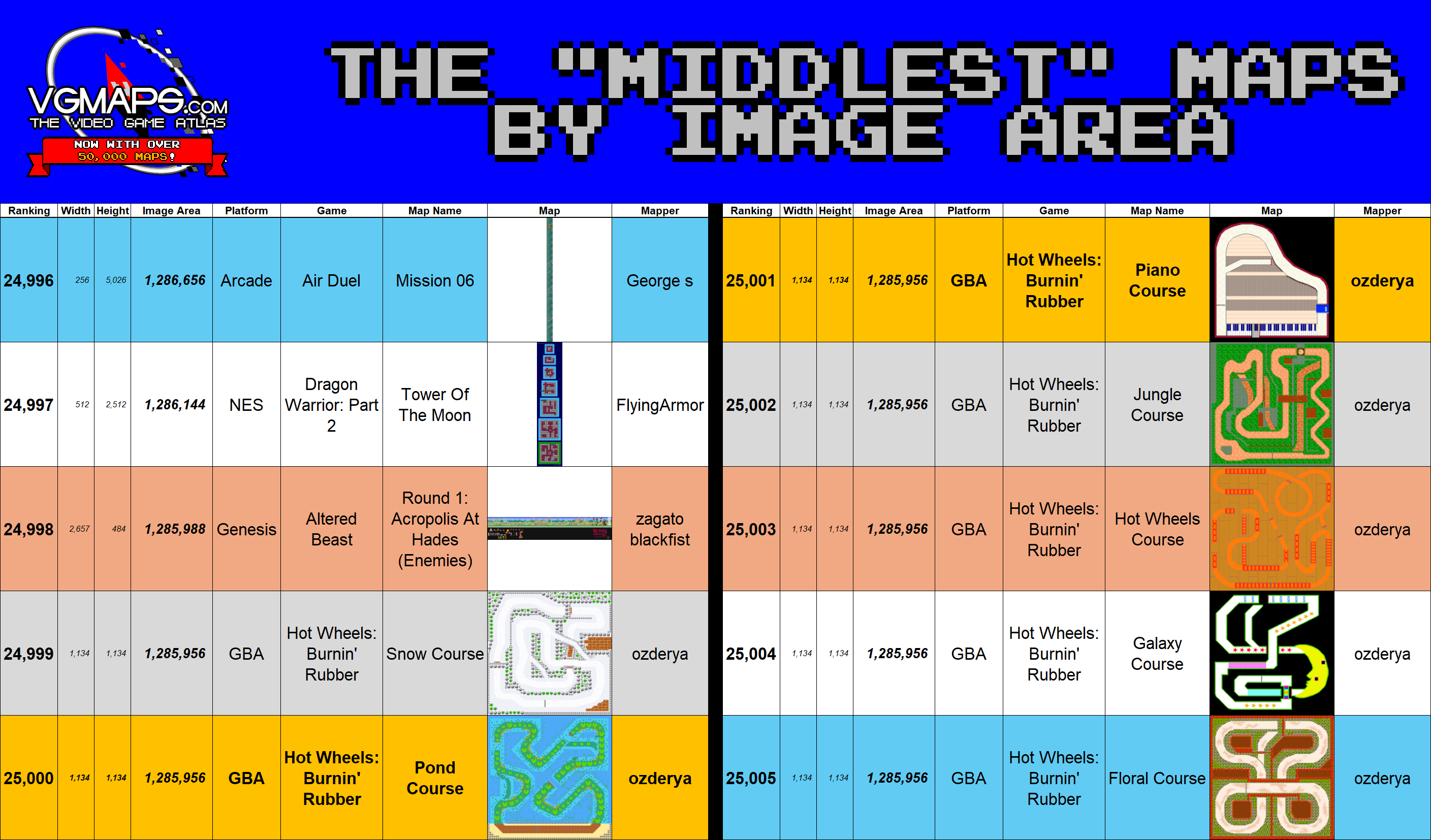 The congratulations aren't just for ozderya, or just any of the recent mappers.  Because to get to 50,000, we of course need all the maps that came before.  Every single one of them.  So if you've ever submitted a map to VGMaps.com, and it's still up, it all counts towards this total (which is actually 50,042 now, since Pop Breaker has 50 stages).